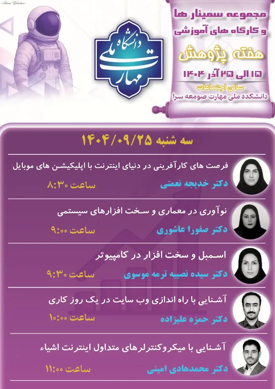 در پایان، رئیس دانشکده ملی مهارت صومعهسرا از ویژهبرنامههای هفته پژوهش خبر داد: «ویژهبرنامههای هفته پژوهش در دانشگاه ملی مهارت با رویکرد ترویج پژوهش کاربردی و مهارتمحور برگزار میشود و شامل برگزاری نشستهای تخصصی، کارگاههای آموزشی، معرفی پژوهشهای برتر کاربردی، تجلیل از پژوهشگران و مربیان مهارتی، و ارائه دستاوردهای فناورانه و مهارتی است.»