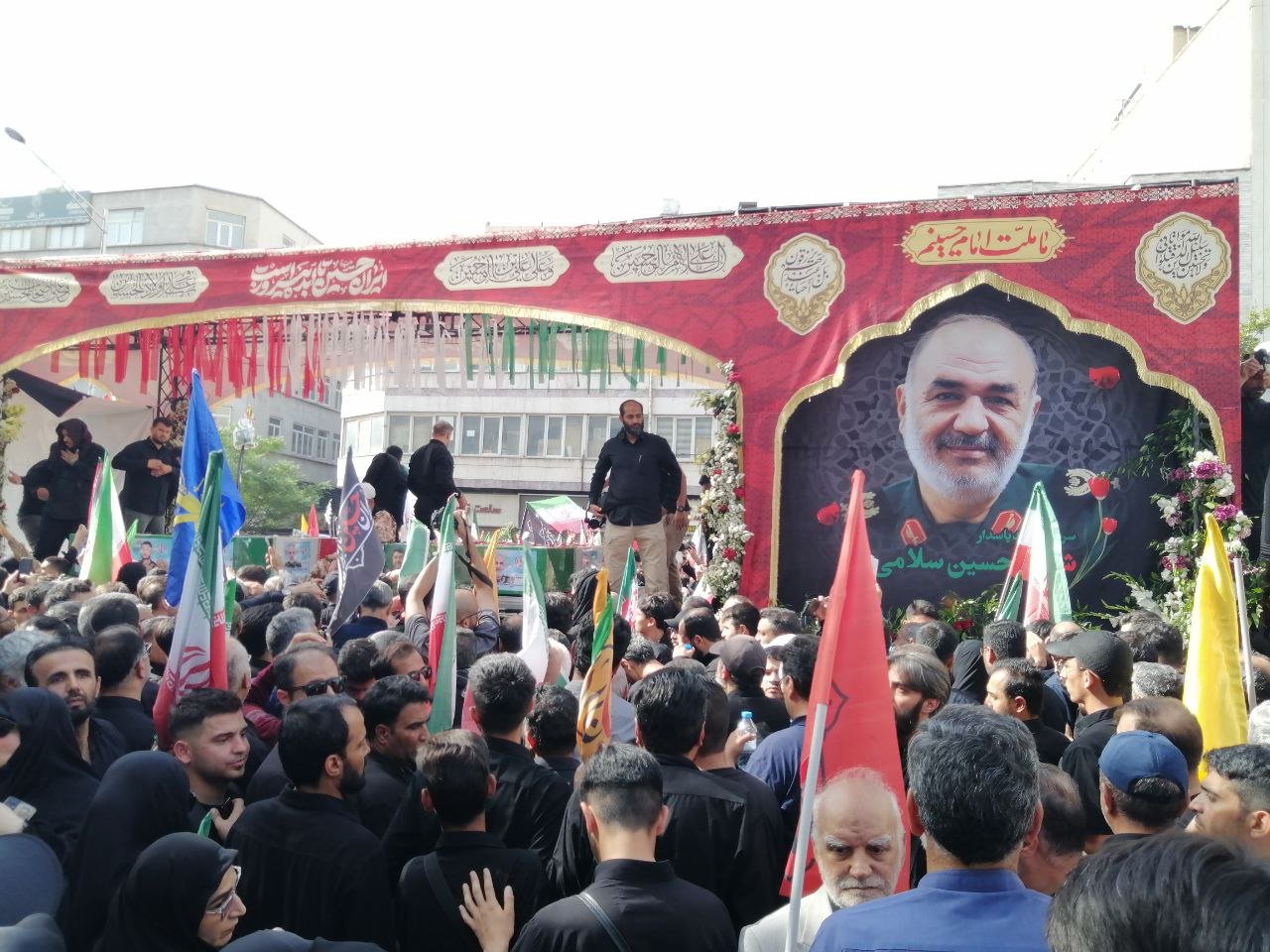 پیکرهای مطهر شهدای گرانقدری، چون سردار سپهبد حسین سلامی، سردار حاجیزاده، سردار محمد باقری، سردار شادمانی، سردار رمضان ایزدی و دیگر فرماندهان بلندپایه مقاومت با احترامی بینظیر بر دوش مردم حمل میشود.