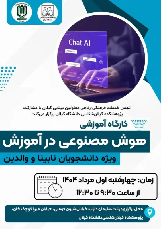نخستین کارگاه آموزشی کاربردهای هوش مصنوعی ویژه دانشجویان نابینا، صبح روز یکشنبه ششم مرداد 1404 در پژوهشکده گیلانشناسی دانشگاه گیلان برگزار شد.