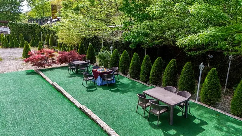 این مجموعه همچنین دارای رستوران، کافی‌شاپ، باغ اختصاصی وباشگاه ورزشی و چشم‌اندازی رؤیایی رو به کوه است که اقامتی آرام و دل‌چسب را برای مهمانان داخلی و خارجی فراهم می‌کند.